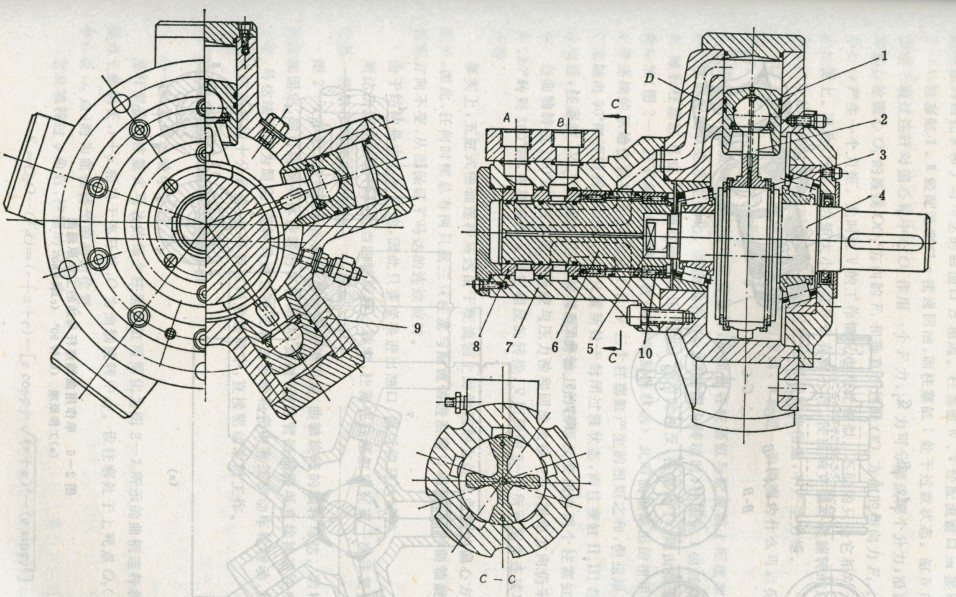 CLJM系列液壓馬達的工作原理可通過圖2-4所示傳統(tǒng)“斯達法”馬達的構(gòu)造(同于國產(chǎn)JMD型)予以認(rèn)識。